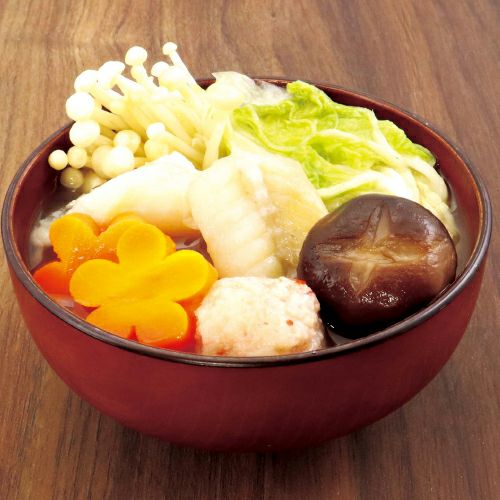 | 原材料 | 白菜(国産)、鮭、甘酒、人参、えのき、蟹味ボール(魚肉すり身、卵白、玉ねぎ、パン粉、でん粉、植物性たん白、食塩、砂糖、かにエキス、食用油脂、エビエキス、小麦粉)、鶏つくね、しいたけ、液体だし(かつおぶし、そうだかつおぶし、こんぶ)、えび、ねぎ、味噌、白だし、醗酵調味液/調味料(アミノ酸等)、アルコール、加工でんぷん、炭酸カルシウム、リン酸塩(Na、K)、甘味料(ソルビトール、ステビア)、着色料(ベニコウジ、カロチノイド)、香料 |