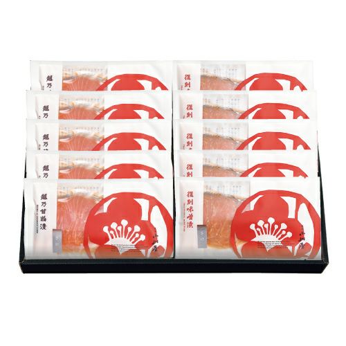 小川屋の誇る看板商品「越乃甘粕漬(こしのあまかすづけ)」と、濃厚なうまみが特徴の「復刻味噌漬」の詰合せです。 越乃甘粕漬は酒粕にたっぷりの甘酒を組み合わせることで、すっきりとした甘さでありながら、ほのかな酒粕の香りとコクのある、上品なうまさを実現。